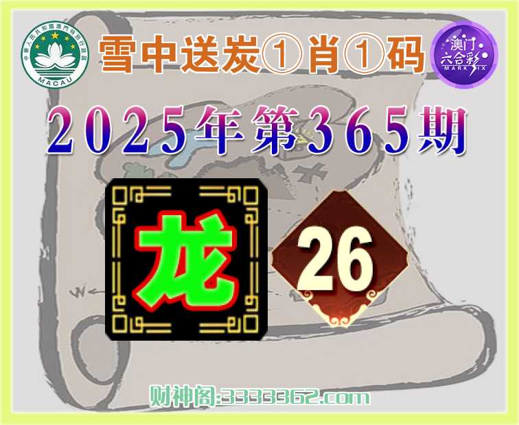 365期:《雪中送炭》 ♠️①肖①码♠️【】【26】开:龙26