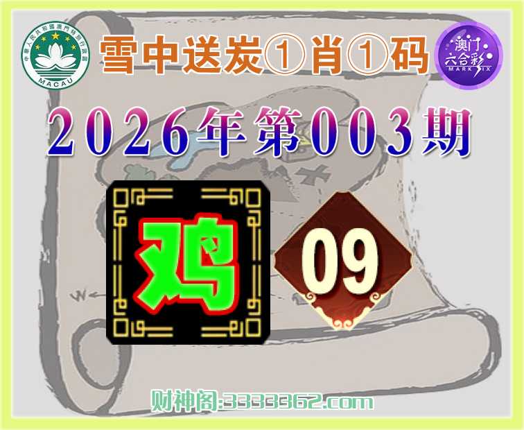 003期:《雪中送炭》 ♠️①肖①码♠️【】【09】开:鸡09