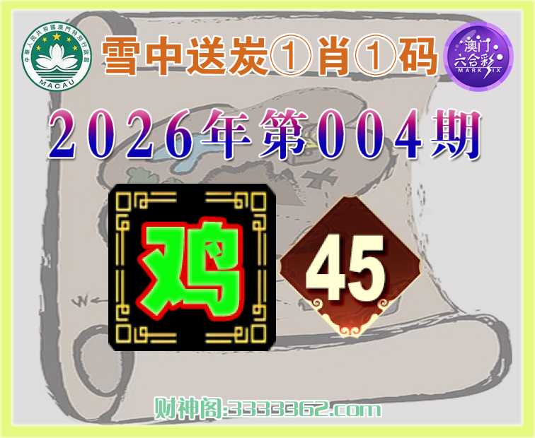 004期:《雪中送炭》 ♠️①肖①码♠️【】【45】开:鸡45