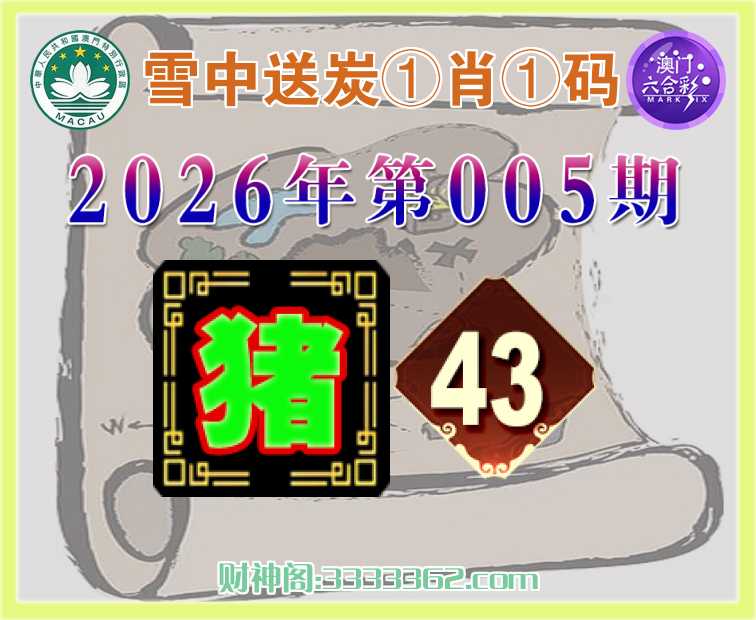 005期:《雪中送炭》 ♠️①肖①码♠️【】【43】开:猪43
