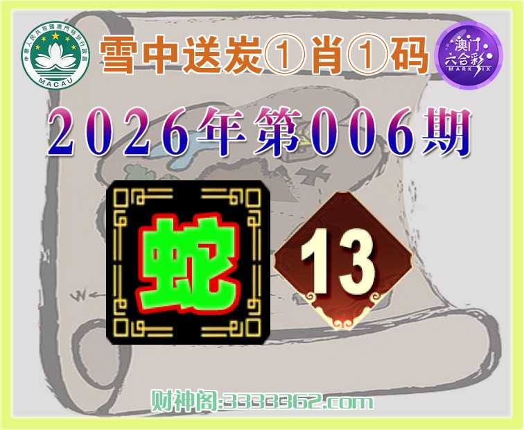 006期:《雪中送炭》 ♠️①肖①码♠️【】【13】开:蛇13