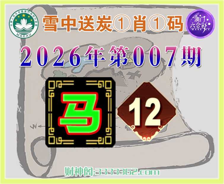 007期:《雪中送炭》 ♠️①肖①码♠️【马】【12】开:00准