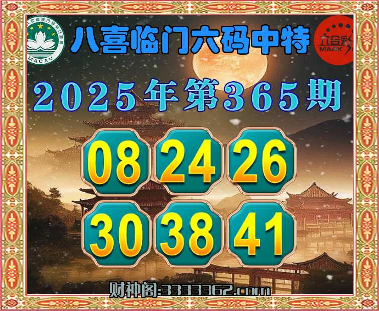 365期: 八喜临门 🧧六码中特🧧【08.24.26.30.38.41】开:26