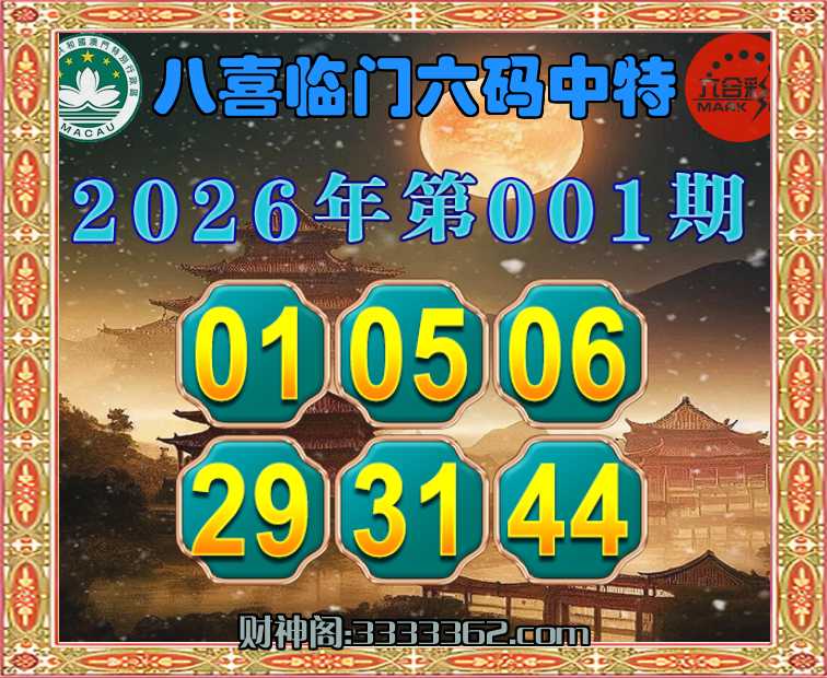 001期: 八喜临门 🧧六码中特🧧【01.05.06.29.31.44】开:29