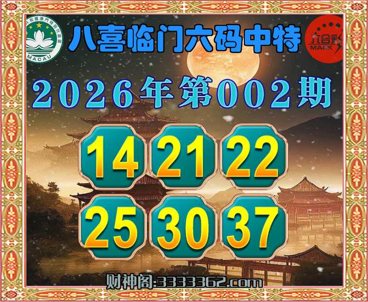 002期: 八喜临门 🧧六码中特🧧【14.21.22.25.30.37】开:22