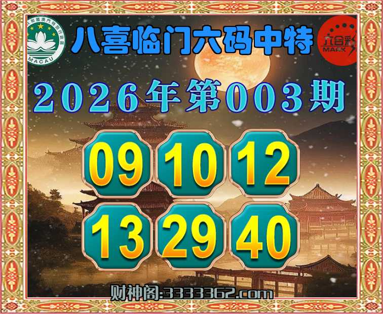 003期: 八喜临门 🧧六码中特🧧【09.10.12.13.29.40】开:09