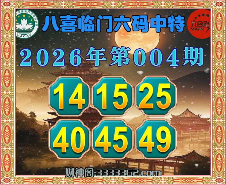 004期: 八喜临门 🧧六码中特🧧【14.15.25.40.45.49】开:45