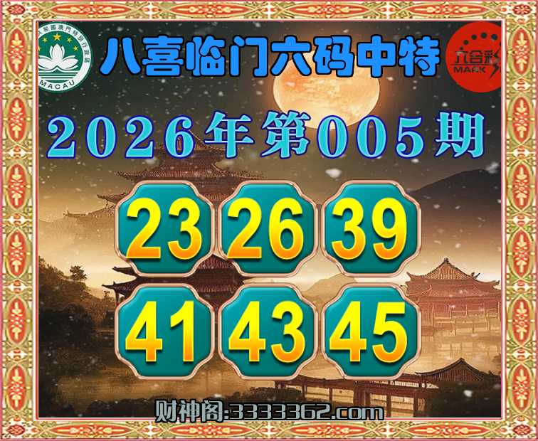 005期: 八喜临门 🧧六码中特🧧【23.26.39.41.43.45】开:43