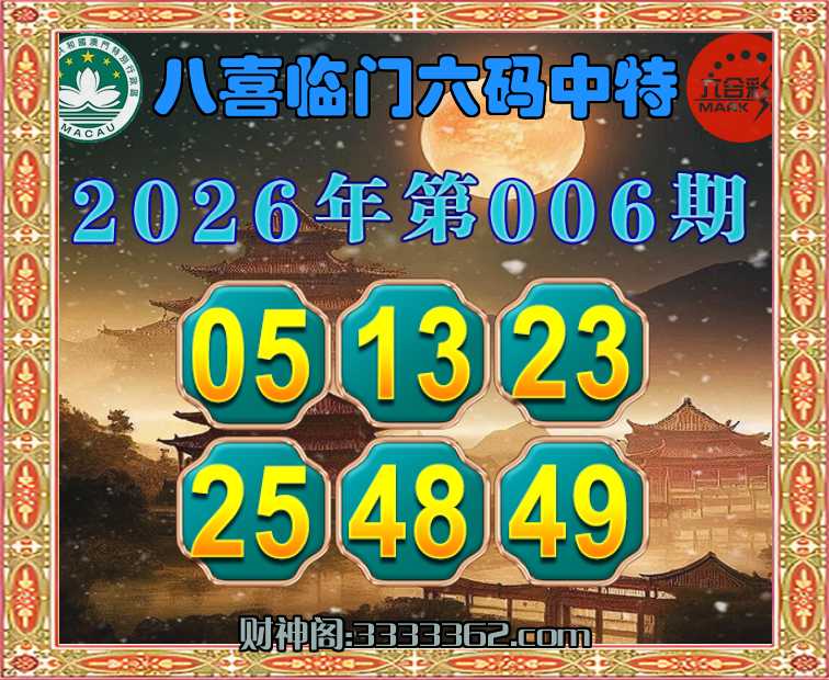 006期: 八喜临门 🧧六码中特🧧【05.13.23.25.48.49】开:13