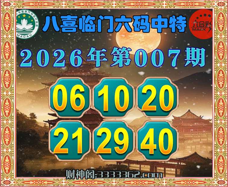 007期: 八喜临门 🧧六码中特🧧【06.10.20.21.29.40】开:00准