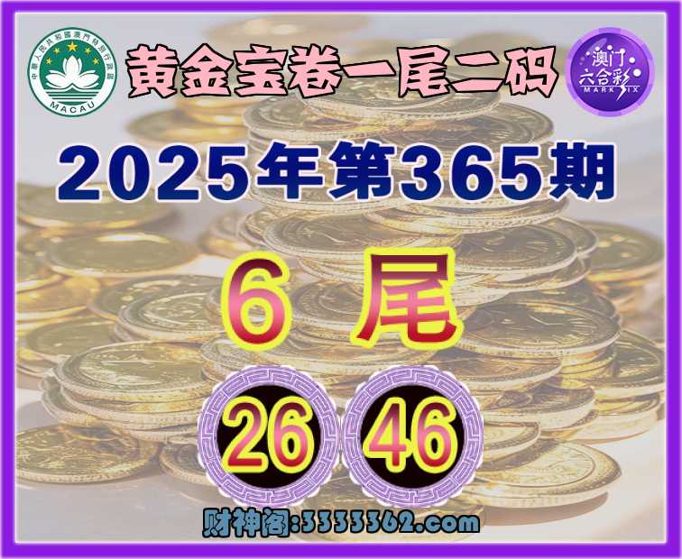 365期:【黄金宝卷】 🎯一尾二码🎯【6尾主:26.46】开:26