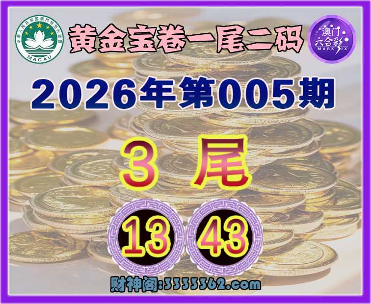 005期:【黄金宝卷】 🎯一尾二码🎯【3尾主:13.43】开:43