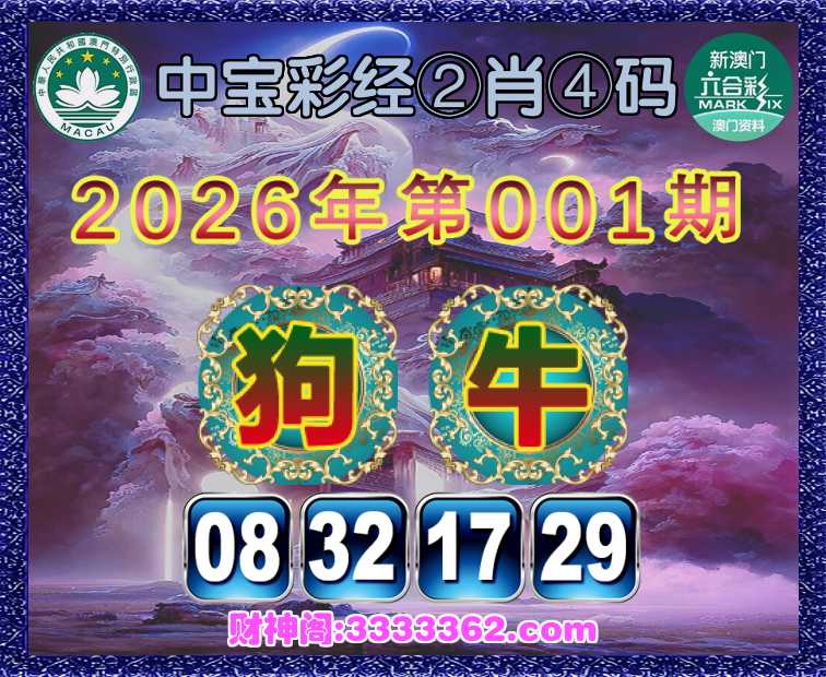 001期:《中宝彩经》 🎖️②肖④码🎖️【狗】【08.32.17.29】开:牛29