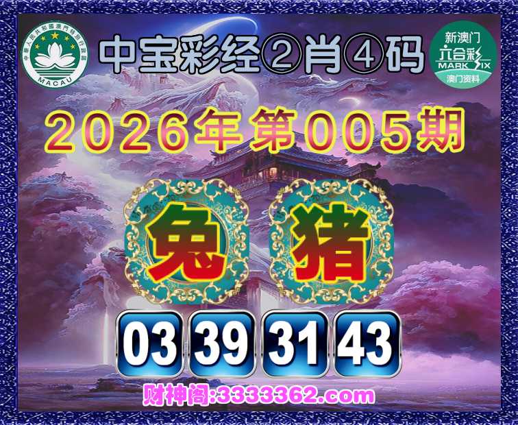 005期:《中宝彩经》 🎖️②肖④码🎖️【兔】【03.39.31.43】开:猪43