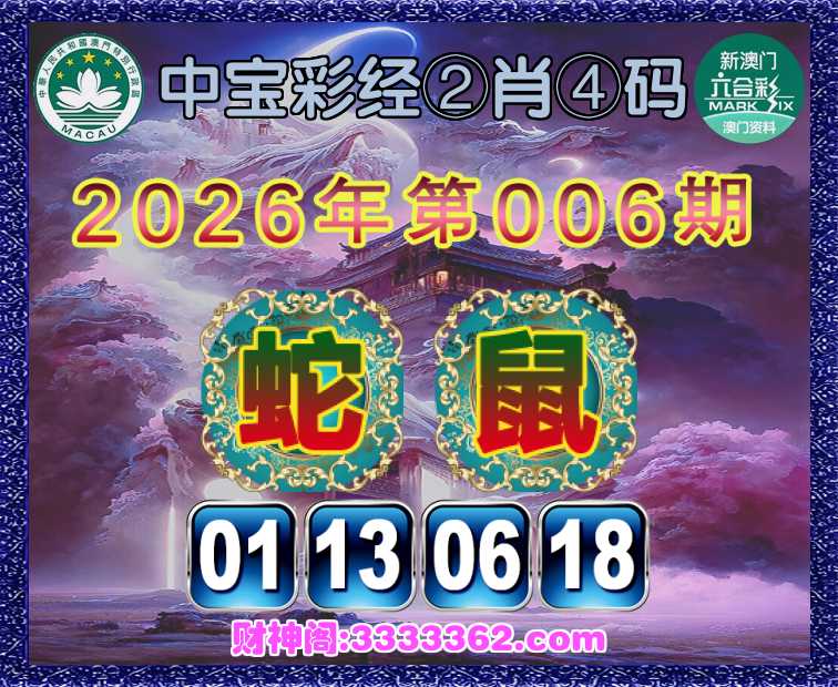 006期:《中宝彩经》 🎖️②肖④码🎖️【鼠】【01.13.06.18】开:蛇13