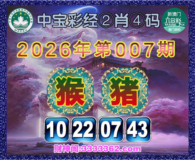 007期:《中宝彩经》 🎖️②肖④码🎖️【猴猪】【10.22.07.43】开:00准