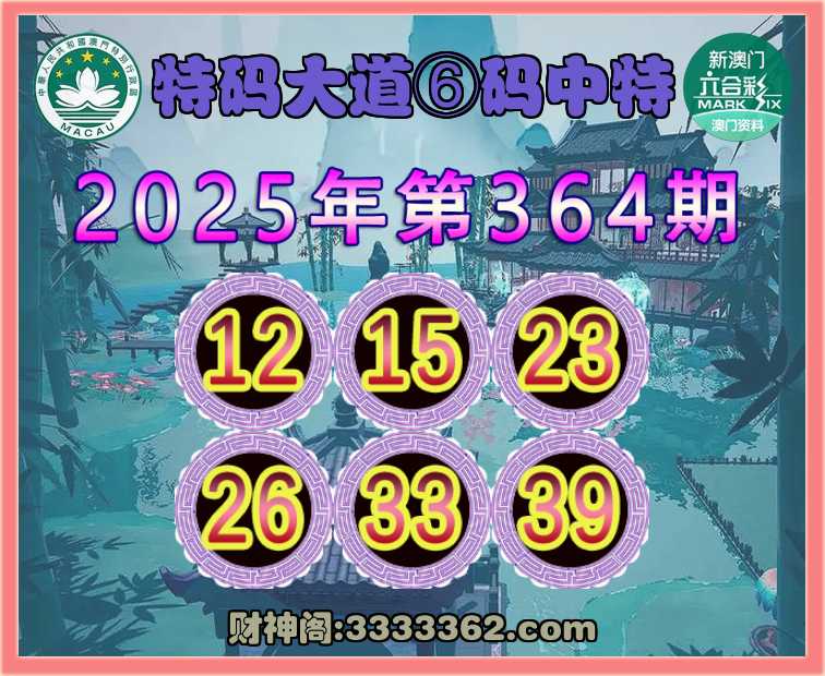 364期: 📙《特码大道》 📙⑥码中特📙【12.15.23.26.33.39】开:12