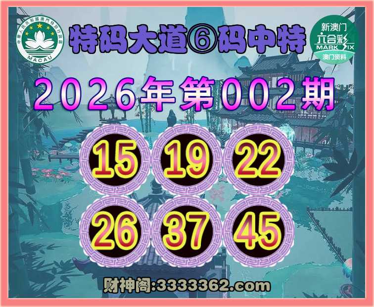 002期: 📙《特码大道》 📙⑥码中特📙【15.19.22.26.37.45】开:22