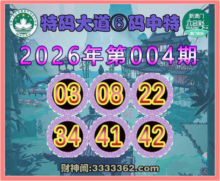 004期: 📙《特码大道》 📙⑥码中特📙【03.08.22.34.41.42】开:00准