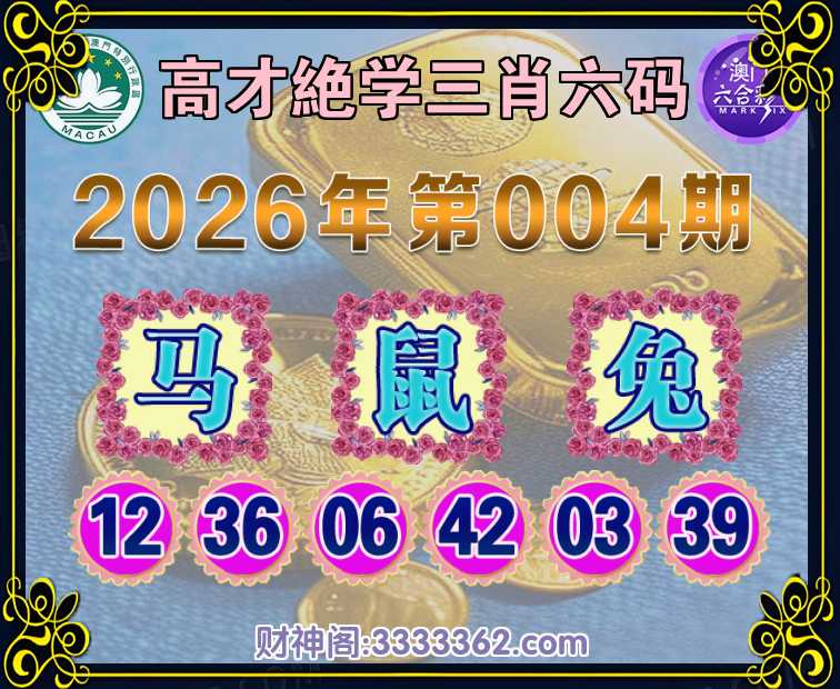 004期:【高才絶学】 🍅三肖六码🍅【马鼠兔】开:00准