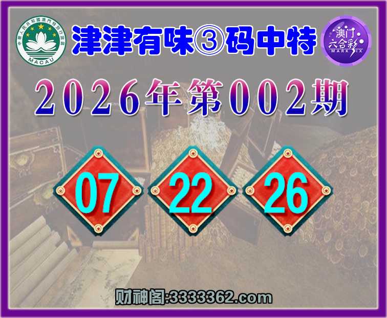 002期:《津津有味》③码中特⌚【07.22.26】开:22