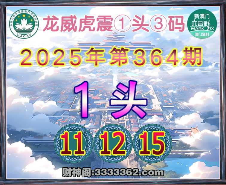 364期: 🍗『龙威虎震』 🍗①头③码🍗【1头主:11.12.15】开:马12