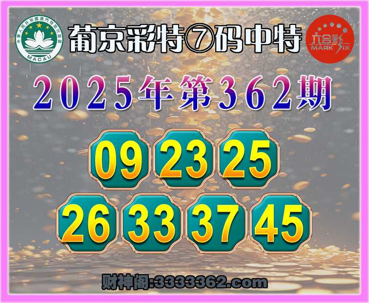 362期:《葡京彩特》 🏇⑦码中特🏇【09.23.25.26.33.37.45】开:23