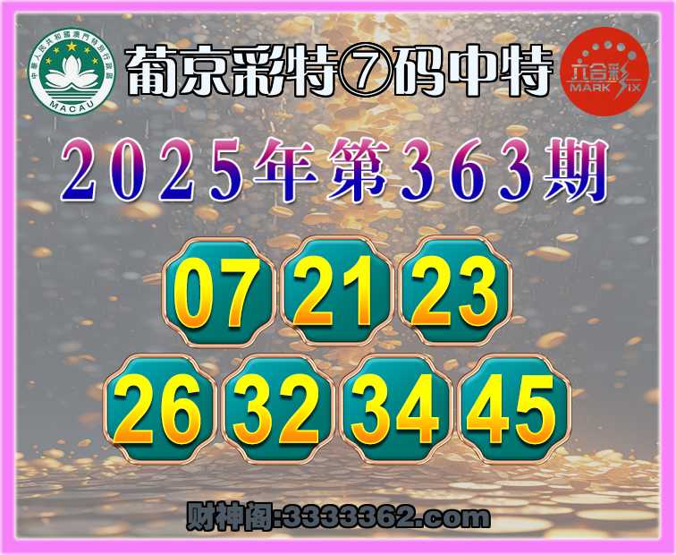 363期:《葡京彩特》 🏇⑦码中特🏇【07.21.23.26.32.34.45】开:26