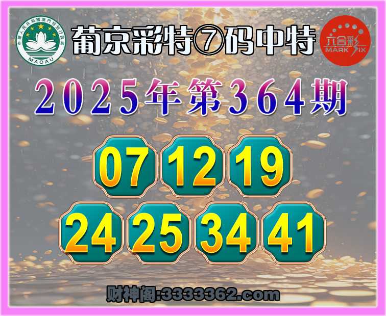 364期:《葡京彩特》 🏇⑦码中特🏇【07.12.19.24.25.34.41】开:12