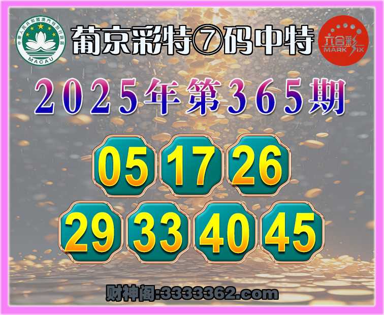 365期:《葡京彩特》 🏇⑦码中特🏇【05.17.26.29.33.40.45】开:26