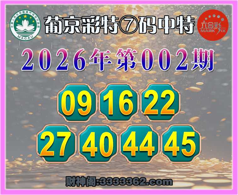 002期:《葡京彩特》 🏇⑦码中特🏇【09.16.22.27.40.44.45】开:22