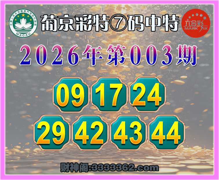 003期:《葡京彩特》 🏇⑦码中特🏇【09.17.24.29.42.43.44】开:09