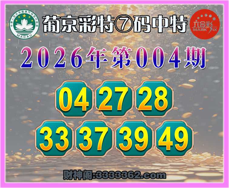 004期:《葡京彩特》 🏇⑦码中特🏇【04.27.28.33.37.39.49】开:00准