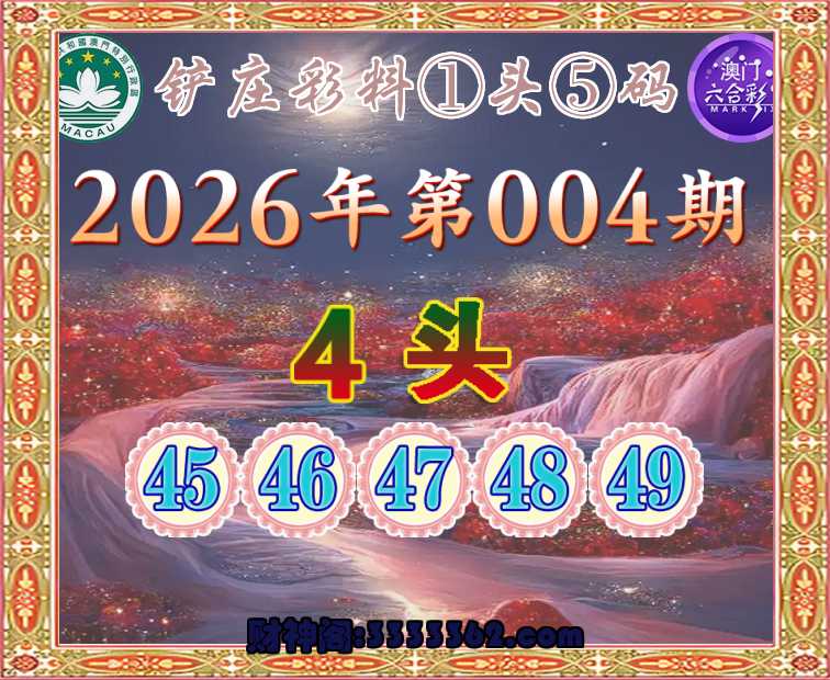 004期:『铲庄彩料』 🥓①头⑤码🥓【4头主:45.46.47.48.49】开:45