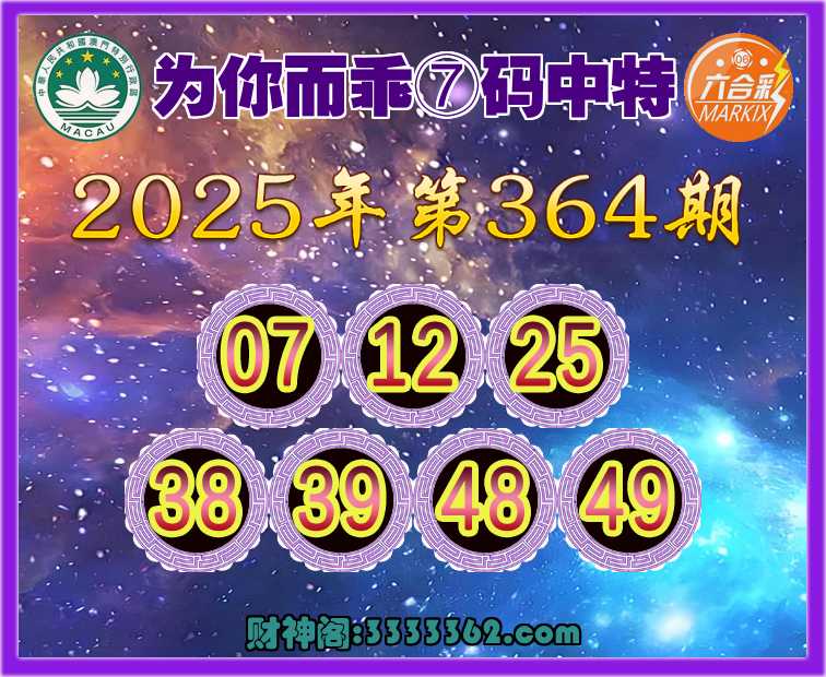 364期:《为你而乖》 ♣️⑦码中特♣️【07.12.25.38.39.48.49】开:12