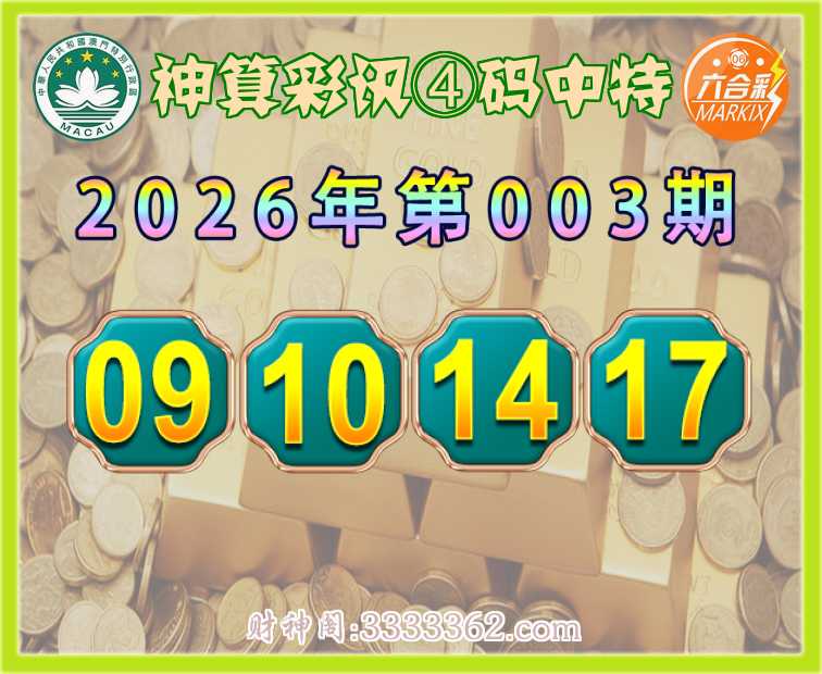 003期:【神算彩讯】 🍎④码中特🍎【09.10.14.17】开:09