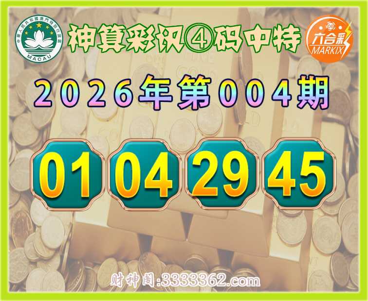 004期:【神算彩讯】 🍎④码中特🍎【01.04.29.45】开:45
