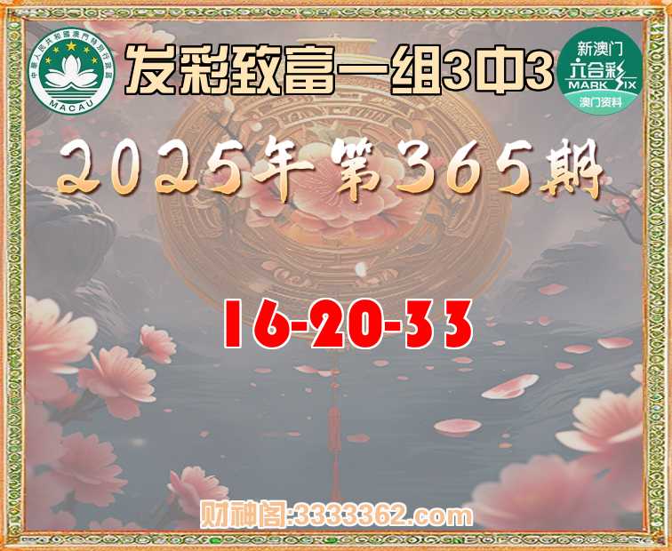 365期:『发彩致富』 👩‍🌾一组3中3👩‍🌾【16-20-33