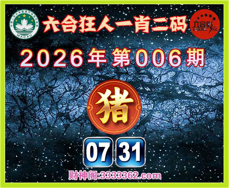 006期:《六合狂人》 🍟一肖二码🍟【猪】【07.31】开:00准