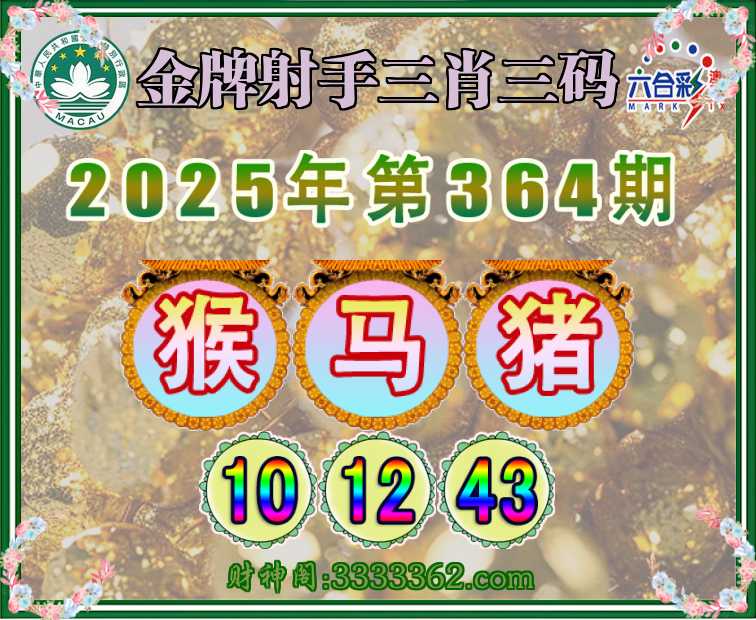 364期:《金牌射手》 🧣三肖三码🧣【猴猪】【10.12.43】开:马12