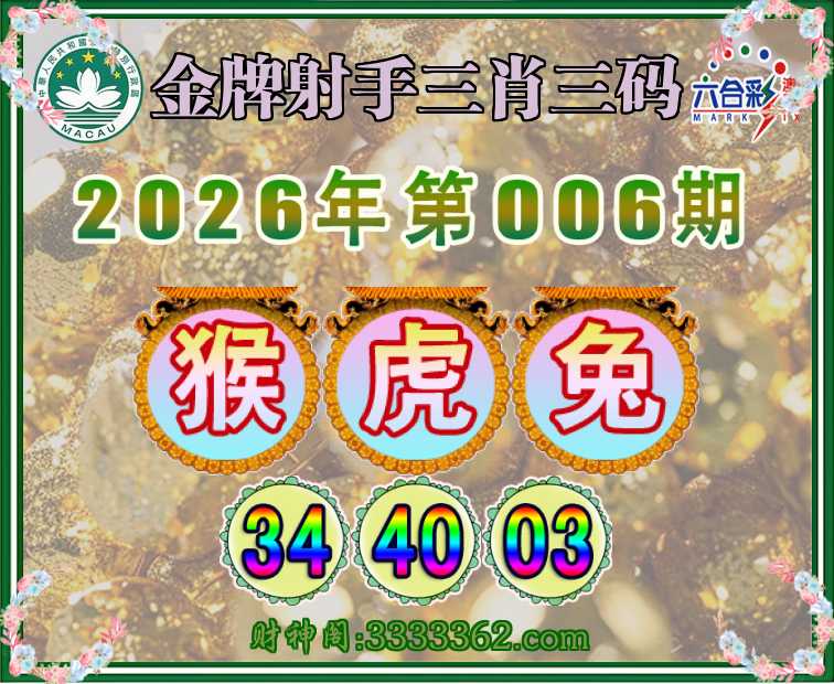 006期:《金牌射手》 🧣三肖三码🧣【猴虎兔】【34.40.03】开:00准