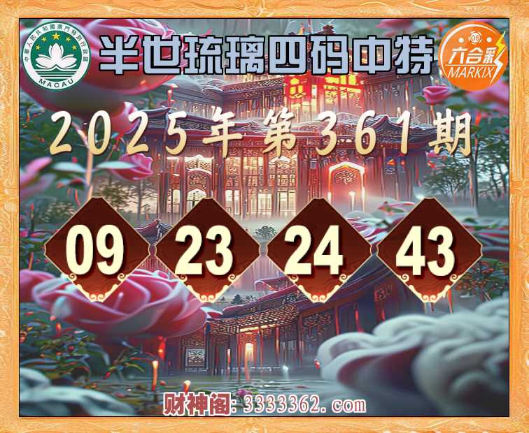 361期:【半世琉璃】 🏄‍♀️四码中特🏄‍♀️【09.23.24.43】开:24
