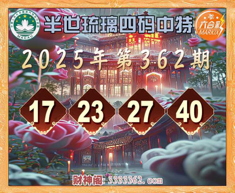 362期:【半世琉璃】 🏄‍♀️四码中特🏄‍♀️【17.23.27.40】开:23