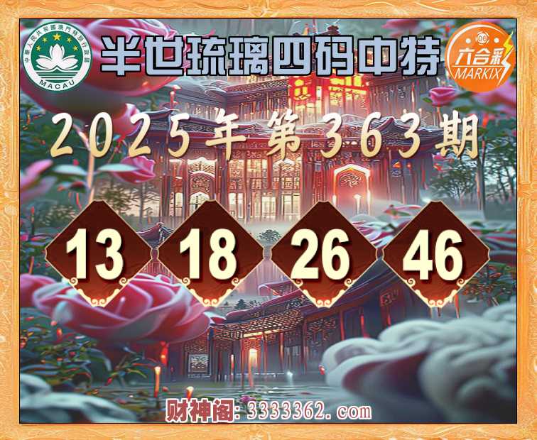 363期:【半世琉璃】 🏄‍♀️四码中特🏄‍♀️【13.18.26.46】开:26