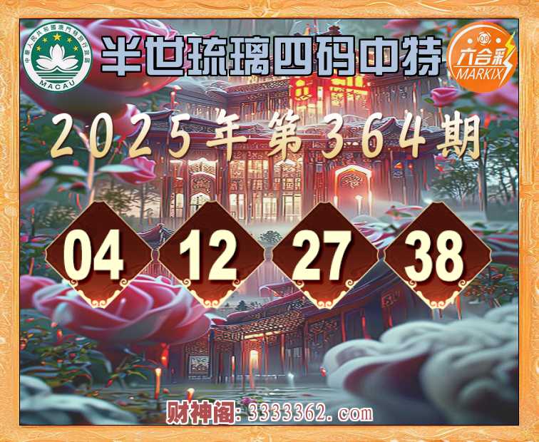 364期:【半世琉璃】 🏄‍♀️四码中特🏄‍♀️【04.12.27.38】开:12