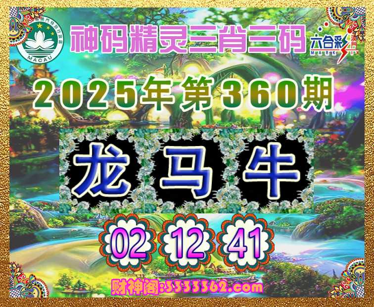 360期:〖神码精灵〗 👘三肖三码👘【龙马】【02.12.41】开:牛41