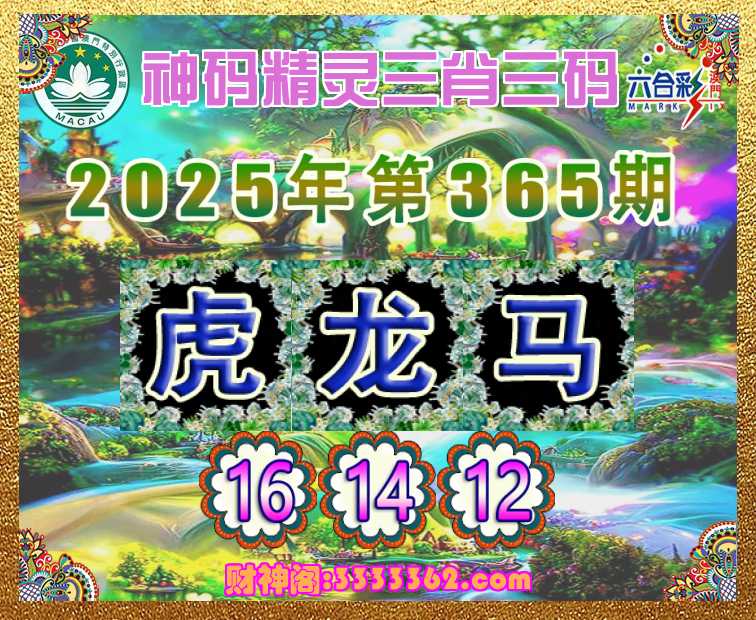 365期:〖神码精灵〗 👘三肖三码👘【虎马】【16.14.12】开:龙26