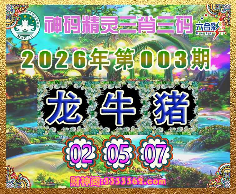 003期:〖神码精灵〗 👘三肖三码👘【龙牛猪】【02.05.07】开:00准