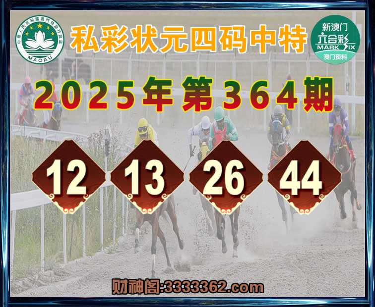 364期:『私彩状元』 🌳四码中特🌳【12.13.26.44】开:12