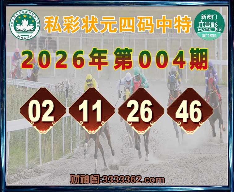 004期:『私彩状元』 🌳四码中特🌳【02.11.26.46】开:00准